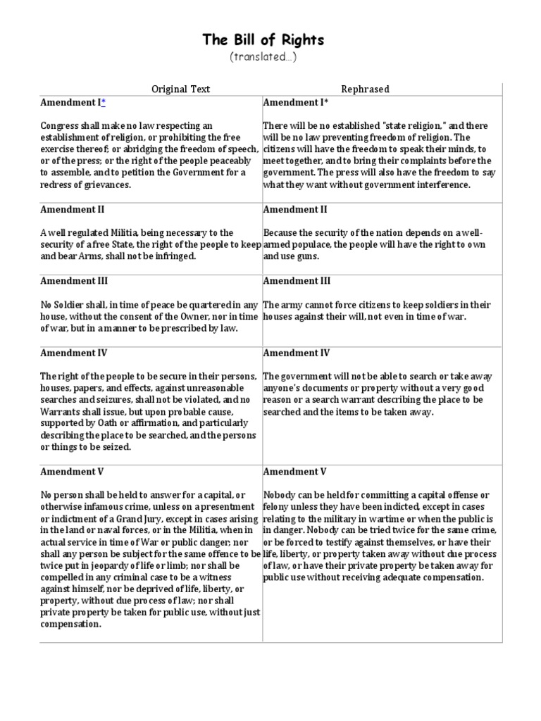 Bill Of Rights Worksheets Bill Of Rights 1791 The Following Summary Of The Ten Rights That Are In The Bill Of Rights Is To Be Used With The Bill Of Course Hero